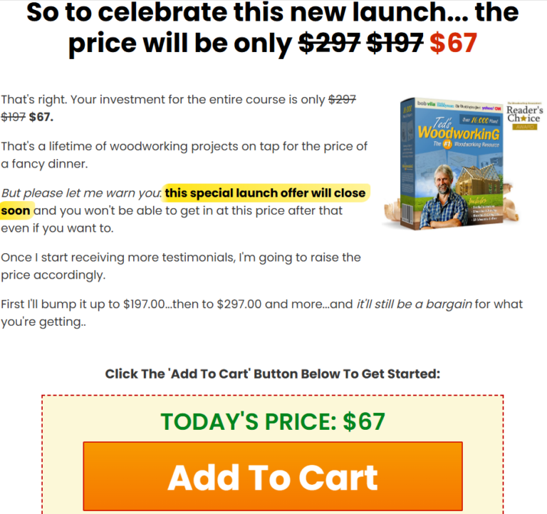 Start Your Order Now Here! Get TedsWoodworking now and save Money. This offer is for a limited time only.
